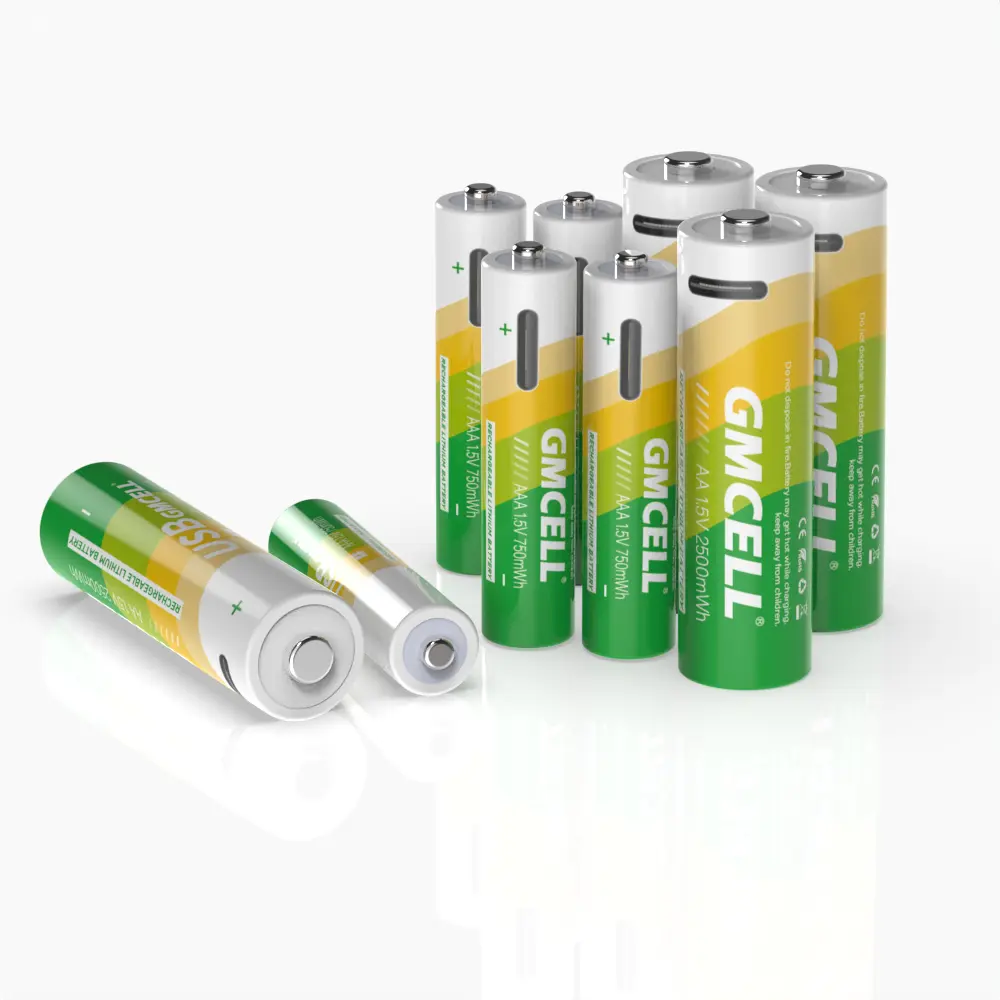 GMCELL 1.5V 3000mWh USB AA AAA Battery Type-C Rechargeable Lithium ion USB Batteries